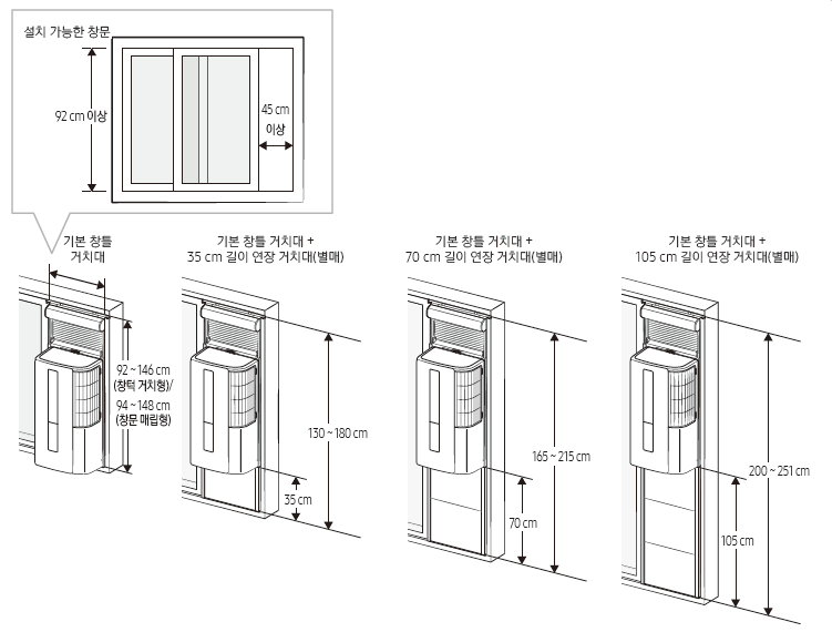 윈도우핏 창문형 에어컨을 설치하기 위해서는 최소한 창문 높이가 92cm, 넓이는 45cm 이상이 나와야 하는데요.