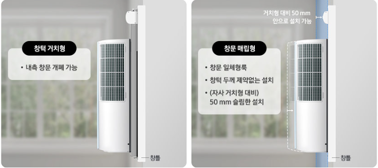 2가지 타입으로 출시되었는데요. 바로 창턱 거치형 제품과 창문 매립형 제품입니다.
